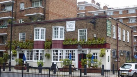 Originally called the Spread Eagle, but later changed to the Grosvenor, named after the road its located on. Its just across Vauxhall bridge & on the road towards Chelsea.