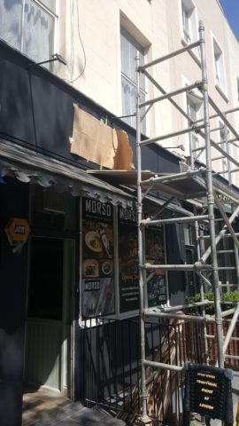 This was explained to the clients & they pleaded for the work to continue & just try to get the paint to cover & take to the fascia board. So recuctantly the work on the restaurant signs were attempted.